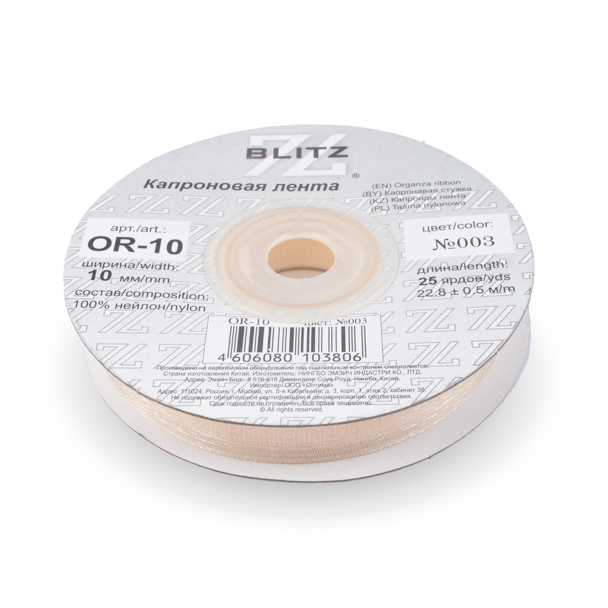 Лента капроновая OR-10 №003 бл. кремовый